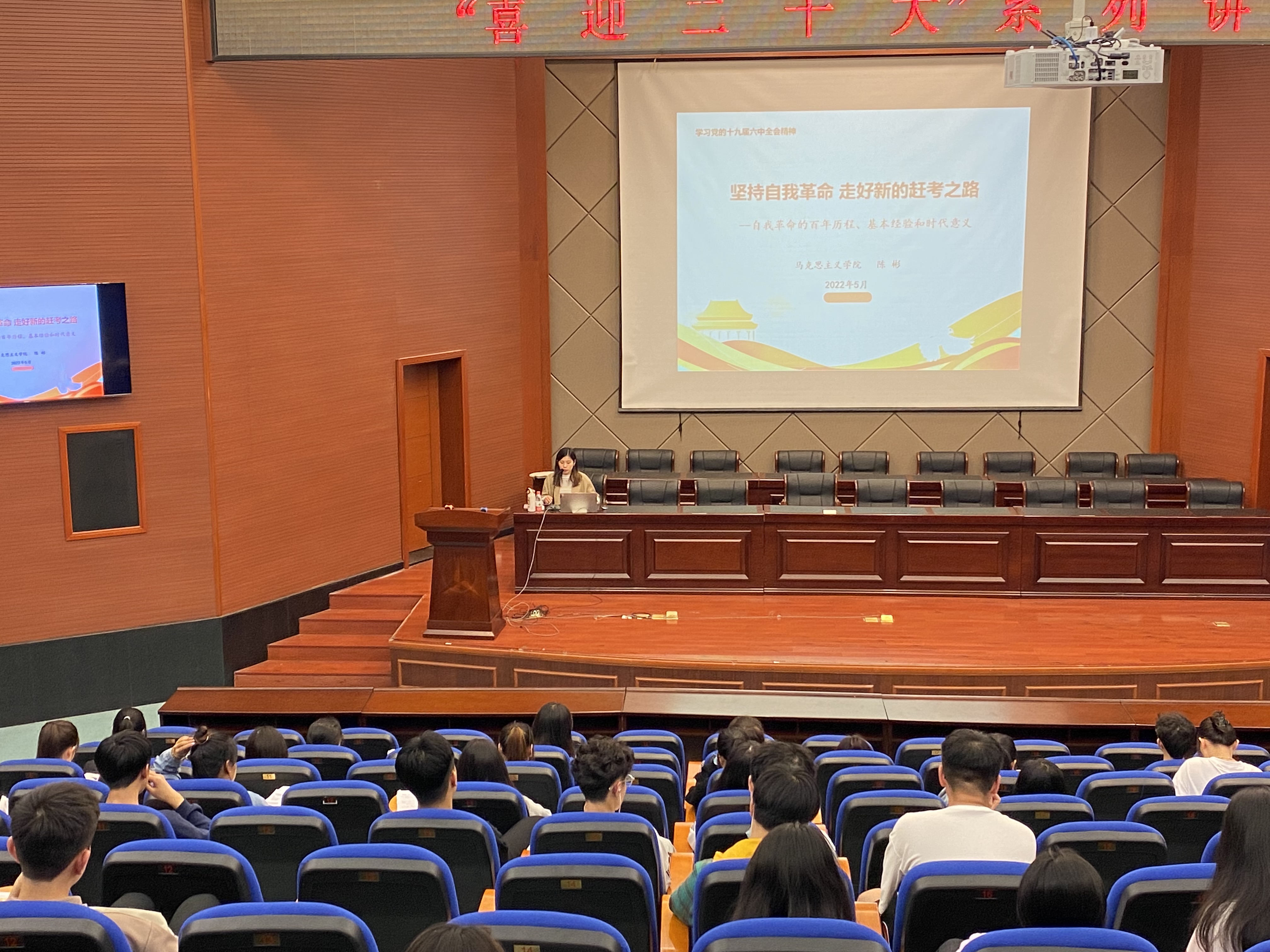 5月24日,bat365中文官方网站习近平新时代中国特色社会主义思想读书社在学术报告厅开展“中国共产党自我革命的百年探索和时代价值”主题讲座,马克思主义学院陈彬老师应邀作此次报告,学院读书社指导老师及全体社员参加了本次讲座。