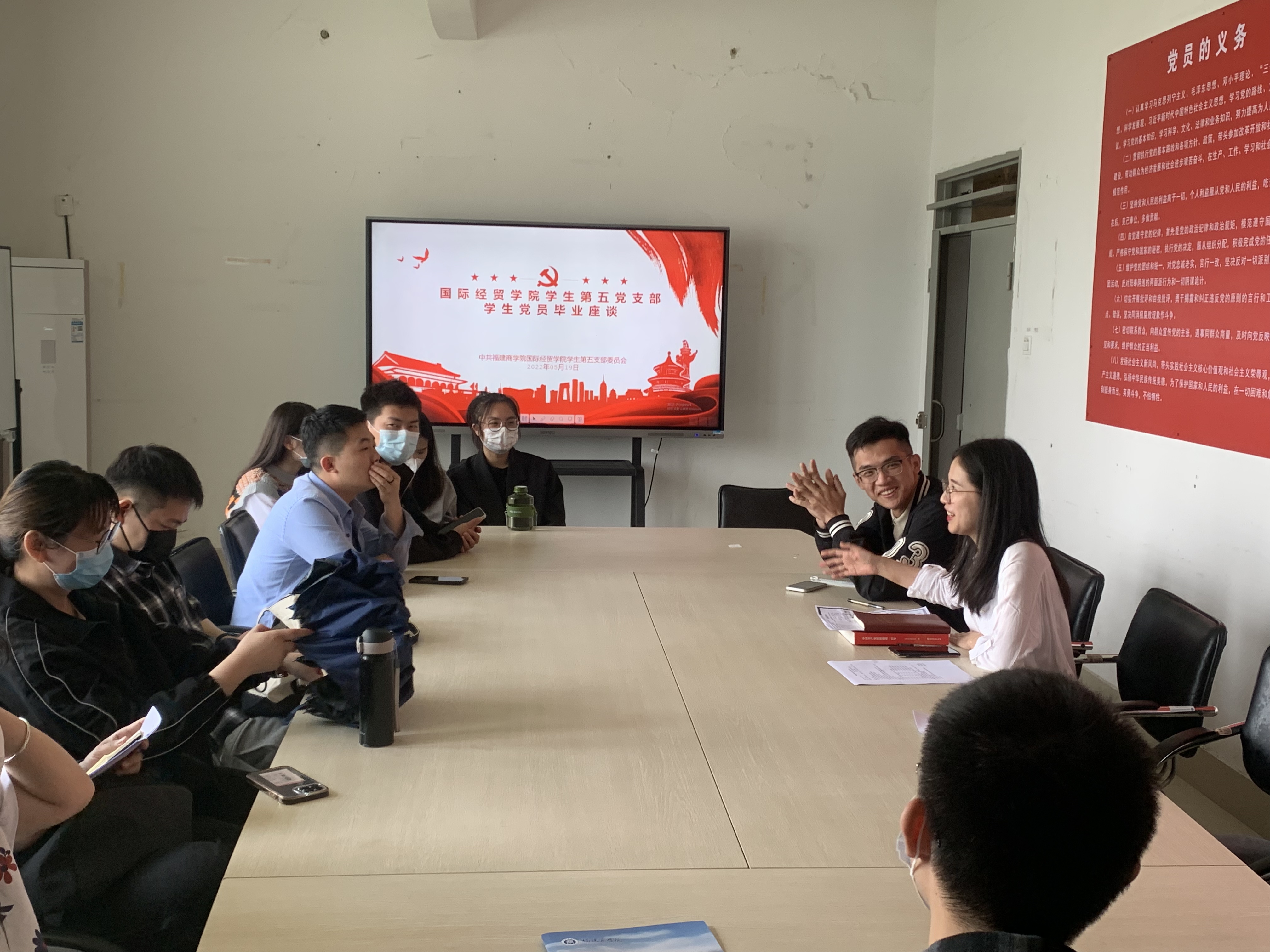 2022年5月19日中午,bat365中文官方网站学生第五党支部在学院三楼会议室召开2022届毕业生党员座谈会。会议由学生第五党支部书记林超主持,全体毕业生党员参会。