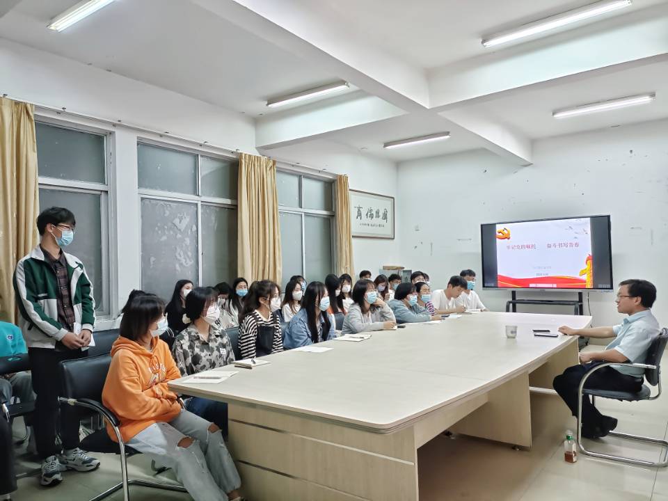4月22日,bat365中文官方网站习近平新时代中国特色社会主义思想读书社在聚贤楼307室开展“牢记党的嘱托,奋斗书写青春”主题讲座,马克思主义学院谢东俊副教授应邀作专题报告,学院读书社指导老师及社员代表参加了本次讲座。
