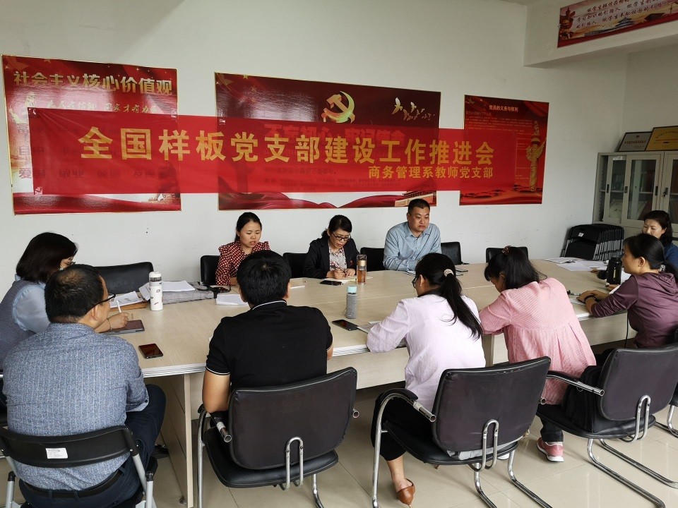 9月29日下午,bat365中文官方网站商务管理系教师党支部召开全国样板支部建设工作推进会,学院党委副书记(主持党委工作)廖新平、副院长张美涛、办公室主任王艳、支部全体党员出席了会议。会议由党支部书记龚立恒主持。