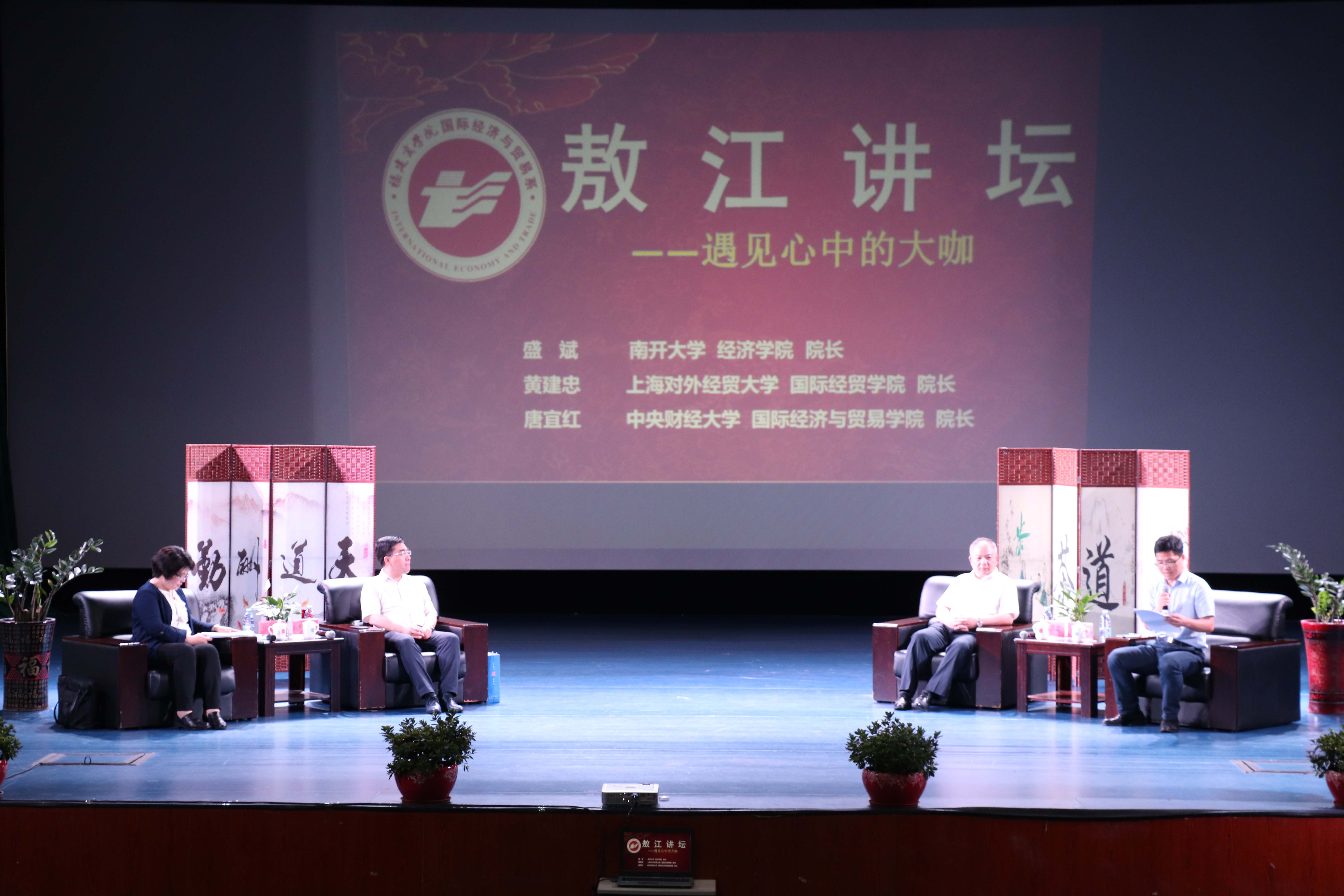 围绕“中美贸易摩擦”热点话题,教育部长江特聘教授、南开大学经济学院院长盛斌教授,上海对外经贸大学bat365中文官方网站院长黄建忠教授,中央财经大学bat365中文官方网站院长唐宜红教授,从政治、经济、社会、人文等角度,分别就中美愈演愈烈的贸易磨擦的发展背景、演变特征、发展趋势及中国的战略选择发表了自己的看法,让同学们对中美贸易摩擦有一个全面、深入的理解。在与同学们的互动交流中,三位教授逐一详细回答了学生们在求知问学、个人成长中遇到的困惑,为学生关心的生涯设计、学业指导、考研指引等热点问题进行解惑,使学生学到了学术前沿知识,得到了心灵的震撼。