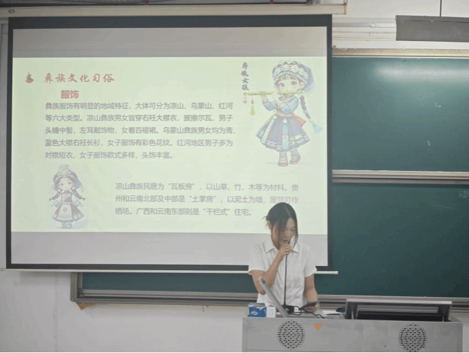 在最受期待的“民族故事分享”环节,支部各部门代表依次登台,以“小故事”讲述“大团结”,真挚表达传递民族情感。同学们聚焦畲族、苗族、彝族、壮族等少数民族,从服饰、饮食、文字、文化等多个维度带领大家了解少数民族文化,讲述从革命战争年代到新时代,我国各民族始终同心同行的生动故事。