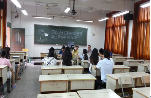 2015年6月9日下午,经济贸易系2015届毕业生实习交流会在湖前校区分专业进行,参加毕业生实习交流会的有各专业带头人、教研室主任、专业教师和全体2015届毕业生。