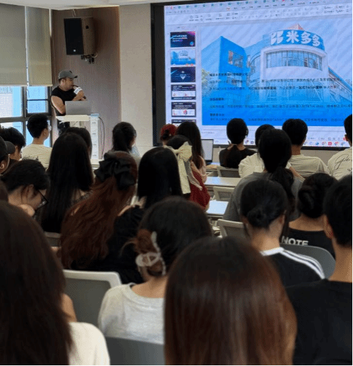 在参观过程中,米多多公司康经理带来一场干货满满的讲座,围绕 Tik Tok Shop 基本运营操作、不同地区选品要点展开详细讲解。互动环节,同学们踊跃提问,康经理逐一耐心解答。短暂休整后,人事部经理开启第二场讲座,深入剖析跨境电商市场格局,并分享 DTC 商家在当下市场脱颖而出的策略,为同学们明晰未来职业发展方向提供了宝贵思路。