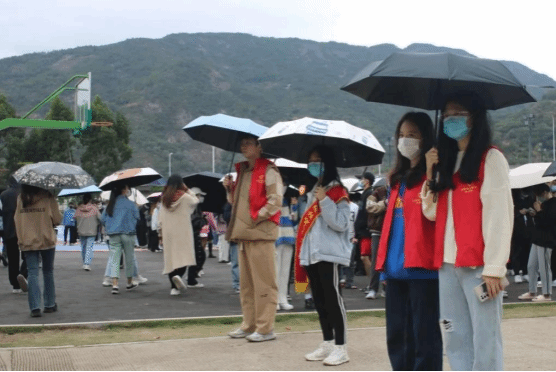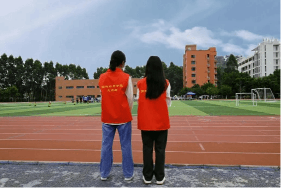 志愿者在操场维持秩序