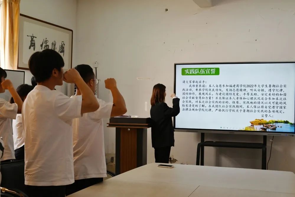 本次暑期“三下乡”社会实践活动,学院共组建13支实践队伍,参与师生近90名,主要以“美丽乡村”直播挑战赛专项、民族团结实践团、就业见习调研团、乡村振兴实践团、文化艺术服务团、校友寻访团、党史学习实践团等项目类别,分赴新疆乌鲁木齐、南平、漳州、泉州、宁德等地开展实践。出征仪式上,实践队学生代表余佳璐表示,本次暑期“三下乡”社会实践活动是一次很好的锻炼和实践的机会,作为新时代青年,既要学好知识,又要深入了解国情社情,要不断在实践中增长见识、强化本领。学院团委副书记王祖鑫老师为各实践队授旗以及分发文化衫,并强调各实践队要做好行前安全教育工作,科学合理安排实践内容,注重宣传营造良好氛围,积极总结实践成果经验,向社会展现福商学子朝气蓬勃的良好形象!