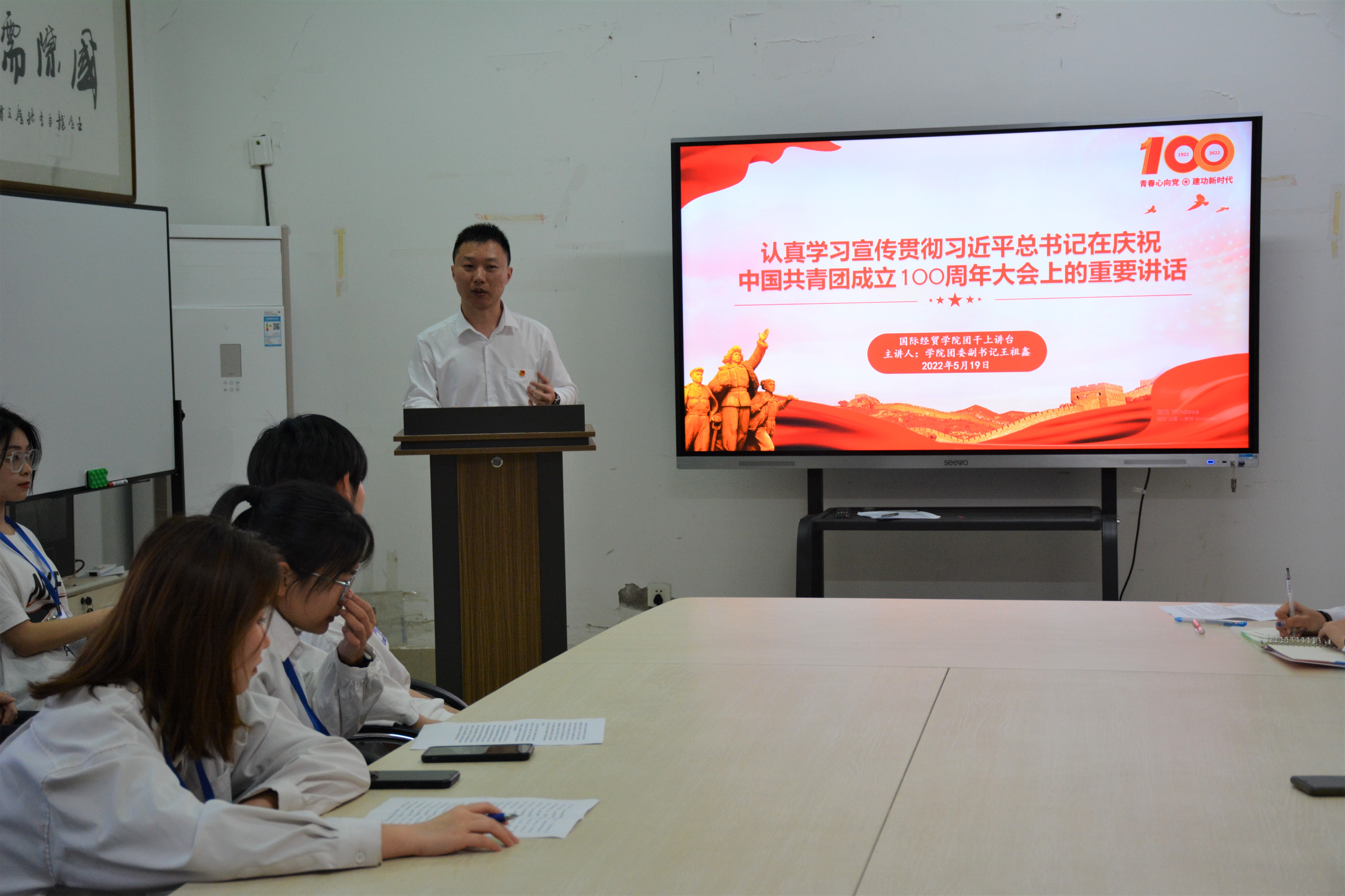 为进一步深入学习宣传贯彻习近平总书记在庆祝中国共产主义青年团成立100周年大会上的重要讲话精神,5月19日,bat365中文官方网站团委开展“团干部上讲台”活动,学院团委副书记王祖鑫对习近平总书记在庆祝中国共产主义青年团成立100周年大会上的重要讲话进行领学。