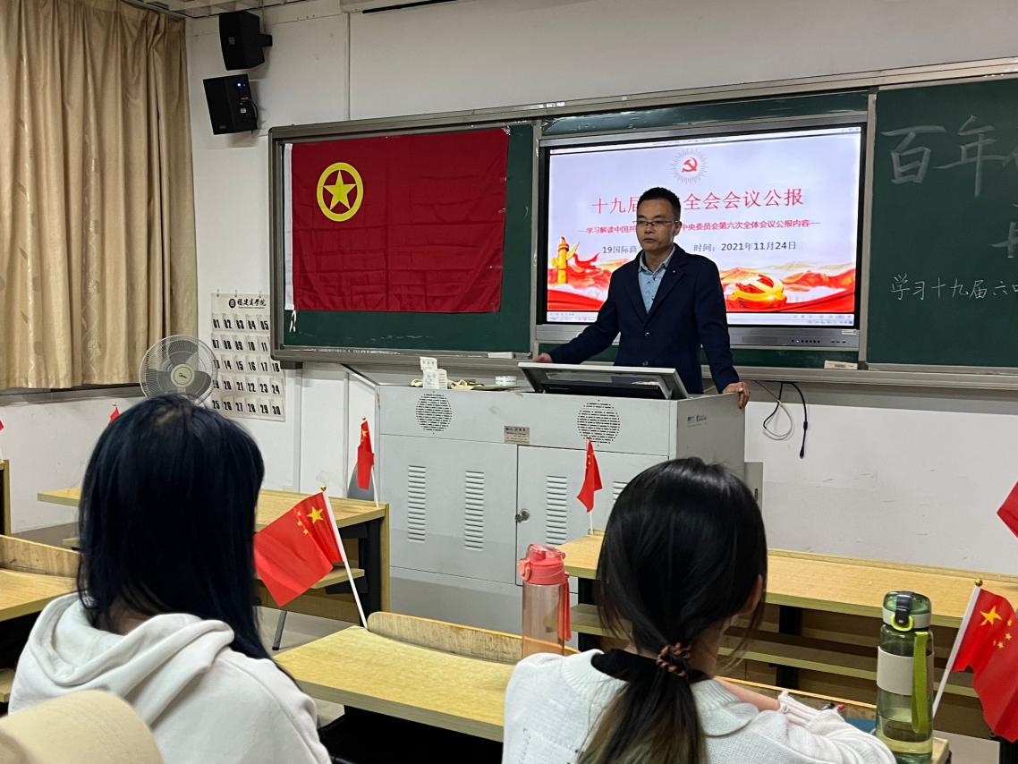 为进一步学习贯彻落实党的十九届六中全会精神,2021年11月24日,bat365官网2019级国际商务1团支部开展了“百年奋斗,再启新程”主题团课活动。bat365中文官方网站党委副书记许模春老师深入联系班级参加本次活动。