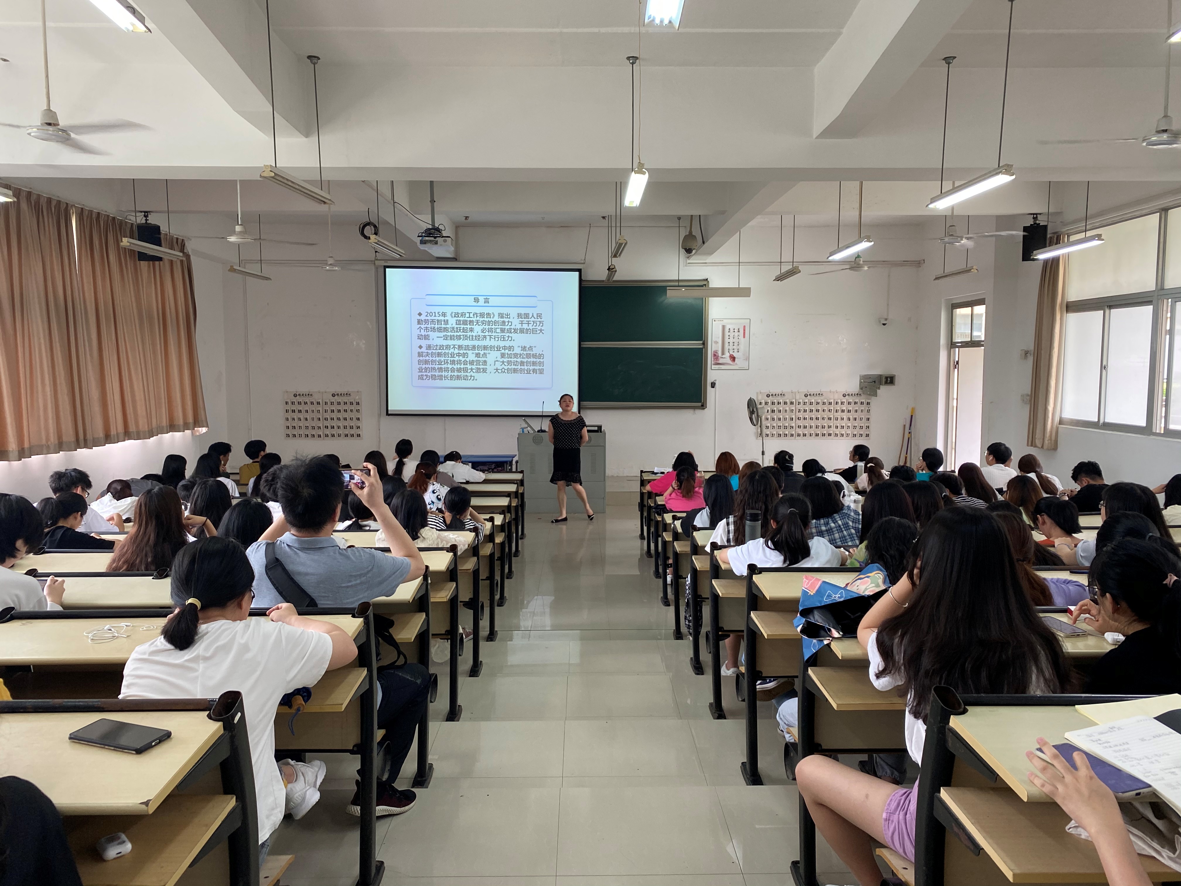 2021年6月1日下,张薇博士在马尾校区笃行T1为国贸学社社员们举办了一场关于“万众创新,引领未来”的主题讲座。