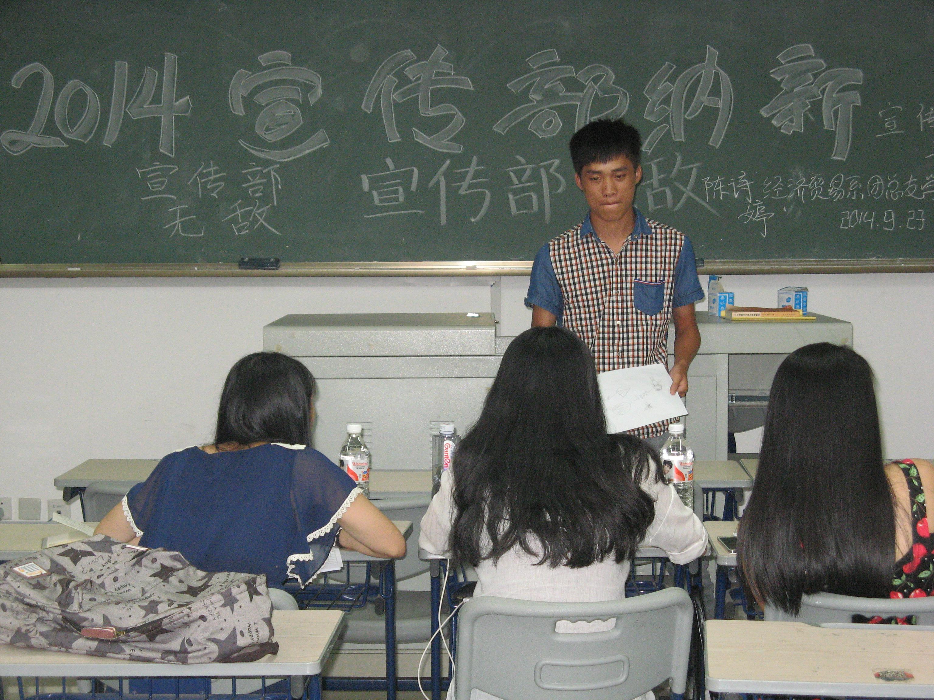 爽朗的金秋悄然而来,更为我们带来了新的热情和希望。9月23日晚7点,经贸系团委学生会干部和14级新生共聚教学楼,举行一年一次的学生会纳新活动。
