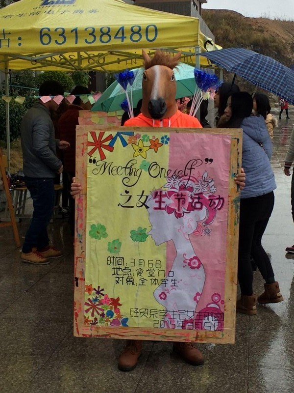 虽然天公不作美,下起了小雨,但同学们的热情依旧不减。女生部的小伙伴们,在食堂门口精心的布置,她们在食堂门口设点,让女生们写上自己的心愿,贴在心愿墙上。男生可帮助女生完成写在心愿墙上的心愿。未被男生拿去的心愿,由书记徐晓旭抽出5名幸运大奖,她们将会收到精美的礼物。最后将每个女生写的心愿贴在孔明灯上,放飞梦想。在现场还有对对子的小游戏,凡是参与的,都将拥有一份小礼物。此外,还有玫凯琳的老师,进行彩妆知识的教课。同学们积极参与,热情焕发,正体现出青春的能量。