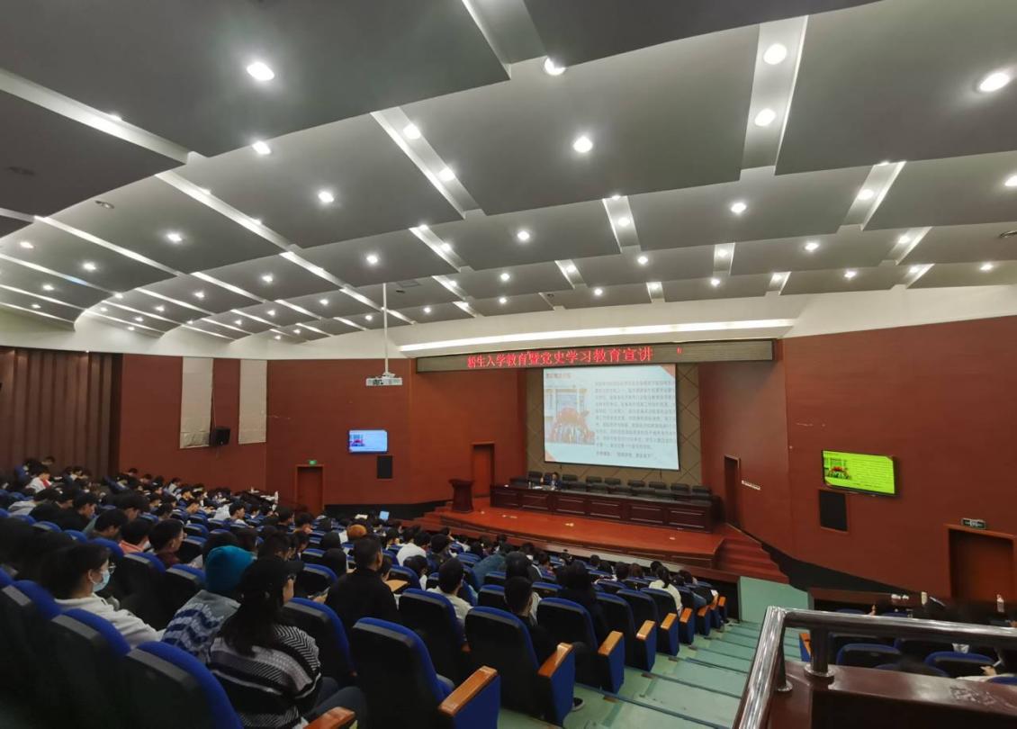 2021年11月28日下午,bat365中文官方网站党委副书记许模春老师给2021级新生作题为《“生在中国,爱在福商”——暨党史学习教育宣讲》的入学教育讲座。2021级432名新生参加本次活动。