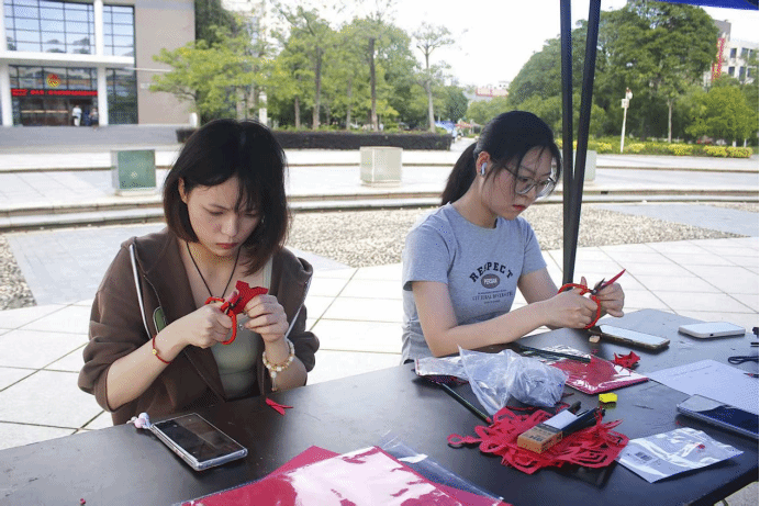 为弘扬中华优秀传统文化,5月13日,bat365中文官方网站团委与校创新创业协会于马尾校区白鸽广场,联合举办“指尖非遗,绽新韵”非遗文化体验活动。