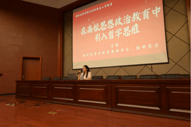 思想引领——担当民族大任。学院党委副书记方霞为同学们上题为《在高校思想政治教育中引入哲学思维》思政课。她从“什么是哲学思维”“为什么要培养学生的哲学思维”“哲学思维与思政教育的内在统一性”“如何在思政教育中引入哲学思维”四个方面进行讲授,她希望同学们重视哲学思维培养,不断坚定理想信念、涵养道德情操、树立规矩意识、积累渊博学识,努力成为德智体美劳全面发展的社会主义建设者和接班人。