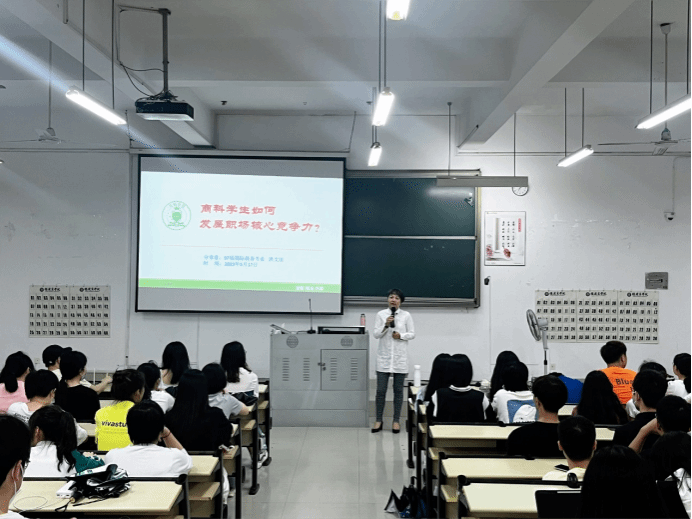 分享会上,洪文洁感谢母校的盛情邀请和老师们的精心栽培,回顾了在母校求学的青葱岁月,她以商科学生就业创业的成长经历向学弟学妹们提供了四点宝贵建议:一是要有创新意识,鼓励个性化发展,发挥聪明才智;二是要有服务意识,强化沟通交流,挖掘内在潜能;三是要有成本意识,提高核心竞争力,降低可控风险。