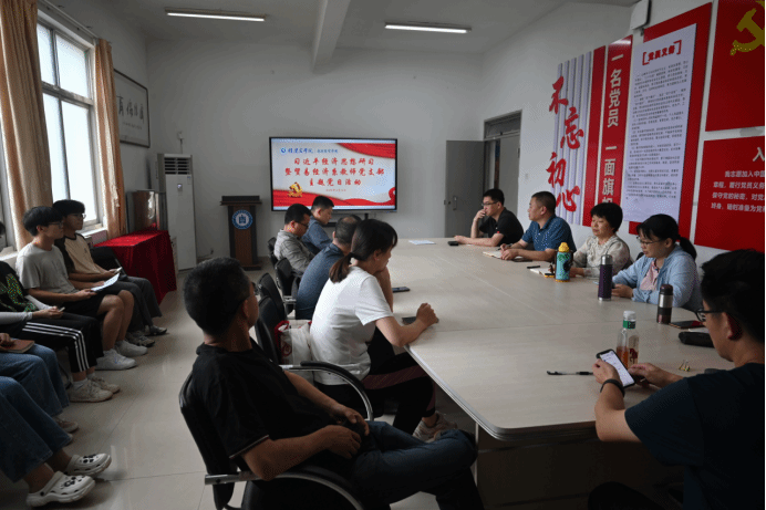 为深入开展学习贯彻习近平新时代中国特色社会主义思想主题教育,努力在以学铸魂、以学增智、以学正风、以学促干方面取得实实在在的成效,6月16日,bat365中文官方网站开展习近平经济思想研习暨贸易经济系教师党支部主题党日活动,学院领导、贸易经济系全体教师和bat365官网习近平经济思想研习小组师生代表出席。