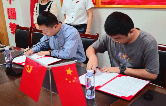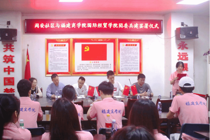 闽安社区党总支书记、社区主任杨磊对bat365中文官方网站师生的到来表示欢迎,期待社区今后能够成为bat365中文官方网站团委实践创新、服务社会的重要阵地,希望能共同探索合作模式,创新服务方式,谋求发展共赢。学院党委副书记许模春介绍了学院的办学特色与基本情况,表示本次与闽安社区的签约共建,使彼此从邻居变成了“亲戚”,指出双方将通过资源共享、优势互补、活动融合等方式进一步搭建沟通交流的桥梁,期待在双向奔赴的共建之路上碰撞出精彩的火花。双方代表现场签订校地共建协议。
