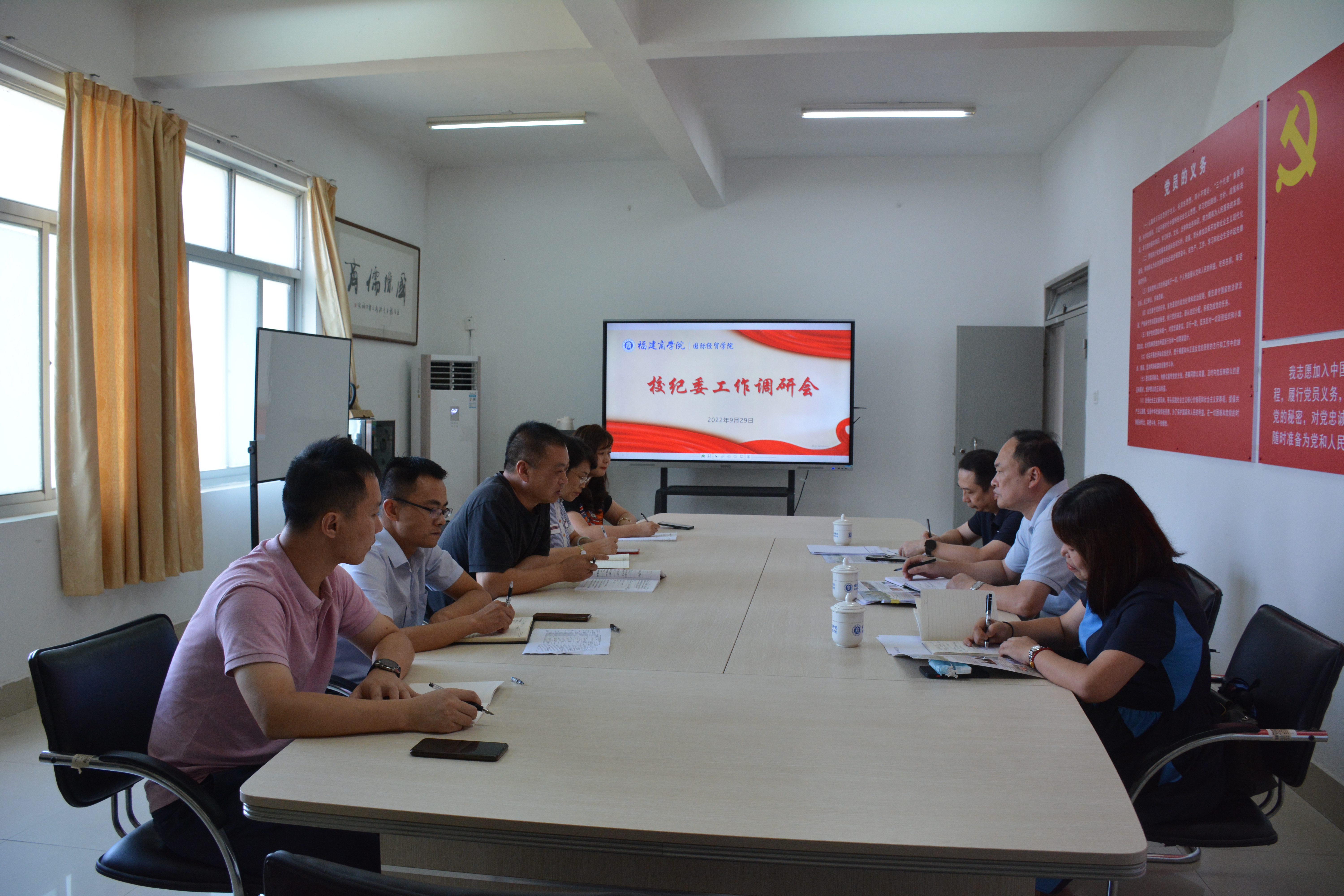 9月29日下午,校纪委书记(监察专员)周训胜到bat365官网调研指导工作,纪委(监察专员办)综合室主任李珍、纪检监察室主任林强陪同调研。全体院领导、办公室主任、团学办副主任参加,会议由院党委书记廖新平主持。