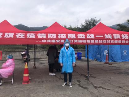 2月1日起,他开始正式投入到抗这场保卫人民群众生命安全和身体健康的严峻斗争中。主要在福安市高速路口交通检疫站负责相关工作,做到外防输入,内防扩散,守住关口,阻碍疫情扩散蔓延,对入城车辆逐一检查测量体温,做到严密排查,把好关口,对来往司乘人员等宣传防疫知识,同一切不利于疫情防控的言行做斗争,做好辟谣工作,以专业知识做好稳定民心工作,一切做得特别细致,收获一致好评。