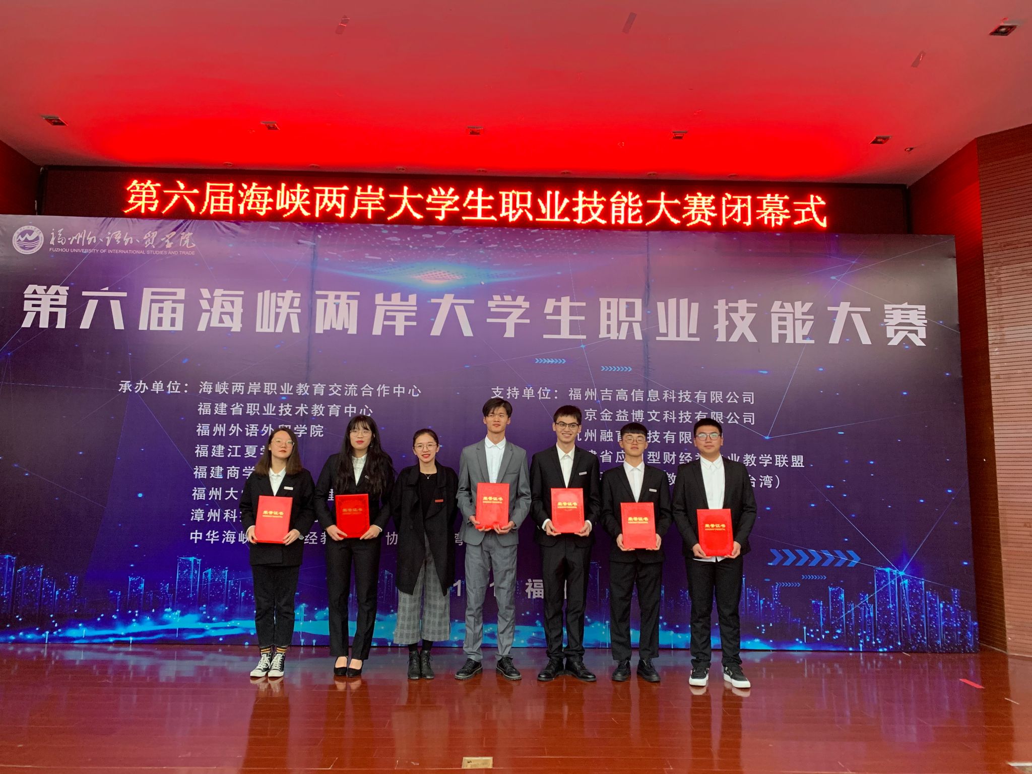 2019年12月29日,由福建省教育厅和教育部高等学校经济与贸易类专业教学指导委员会主办的第六届海峡两岸大学生职业技能大赛在福州外语外贸学院举行。江西财经大学、福建师范大学、新疆财经大学、烟台大学等大陆6个省市40余所高校及台湾中原大学等3所台湾高校代表队参赛。我校bat365中文官方网站林丹晨、黄智杰、刘康、陈燕平、彭霆峰、孟令鑫六名同学组成的代表队(指导老师:林超、江剑敏)在全国高校第三届两岸大学生国际贸易经营实战沙盘竞赛本科组中获得团体三等奖、国外公司二等奖和国内公司三等奖。