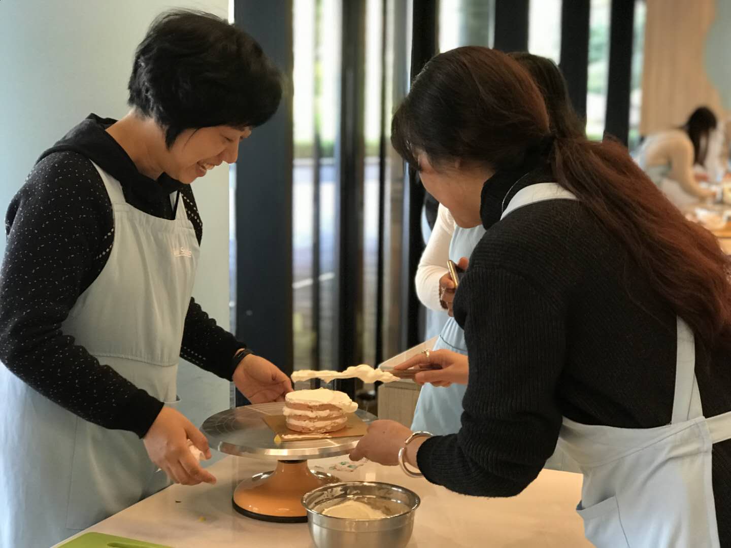 3月12日下午,bat365官网为庆祝第109个“国际劳动妇女节”,丰富bat365官网女教职工的业余文化生活,缓解紧张繁忙的工作压力,组织并安排了 “壹刻蛋糕手工坊蛋糕DIY”的活动。