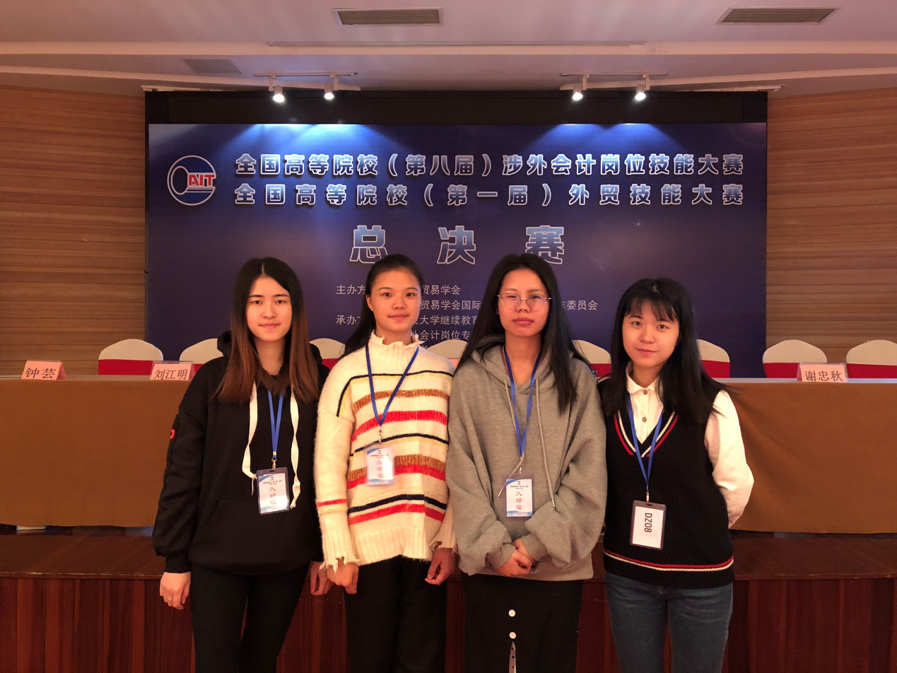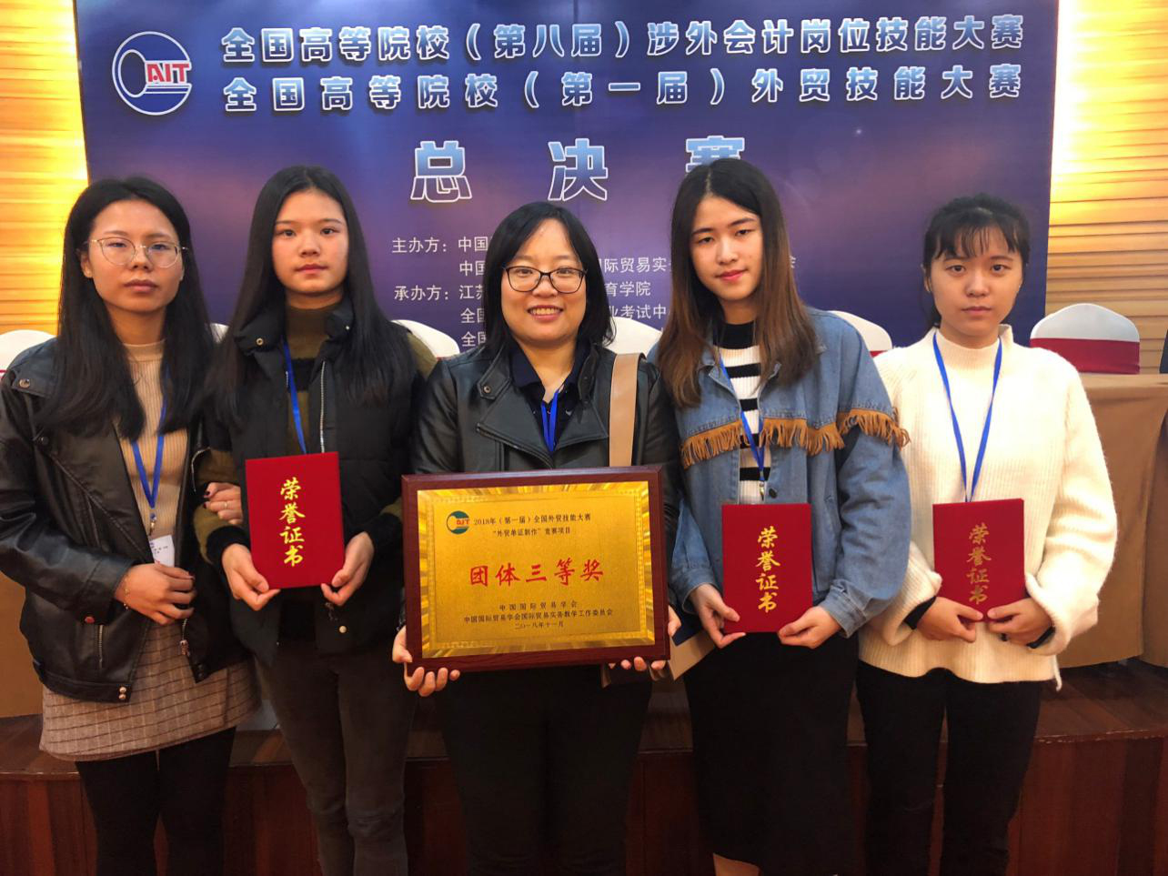 为了大力推进本校高素质技能型人才的培养,提高外贸单证制作水平,检验教学效果,培养大学生的动手实践能力,提升我校学生的综合素质,国际经济与贸易系在院领导和系领导的大力支持下,委派曾靓老师为指导老师,选拔了2016级国际经济与贸易专业四名学生参与了大赛,最终获得个人二等奖一个(刘倩颖)、个人三等奖一个(何倩)以及团体三等奖(刘倩颖、何倩、董露、杨小芳)的成绩。本次大赛,展现了bat365官网国际贸易单证实务的教学水平,也为未来专业改革和实践教学提供新的方向。 团体三等奖 刘倩颖个人二等奖 何倩个人三等奖 全体参赛选手