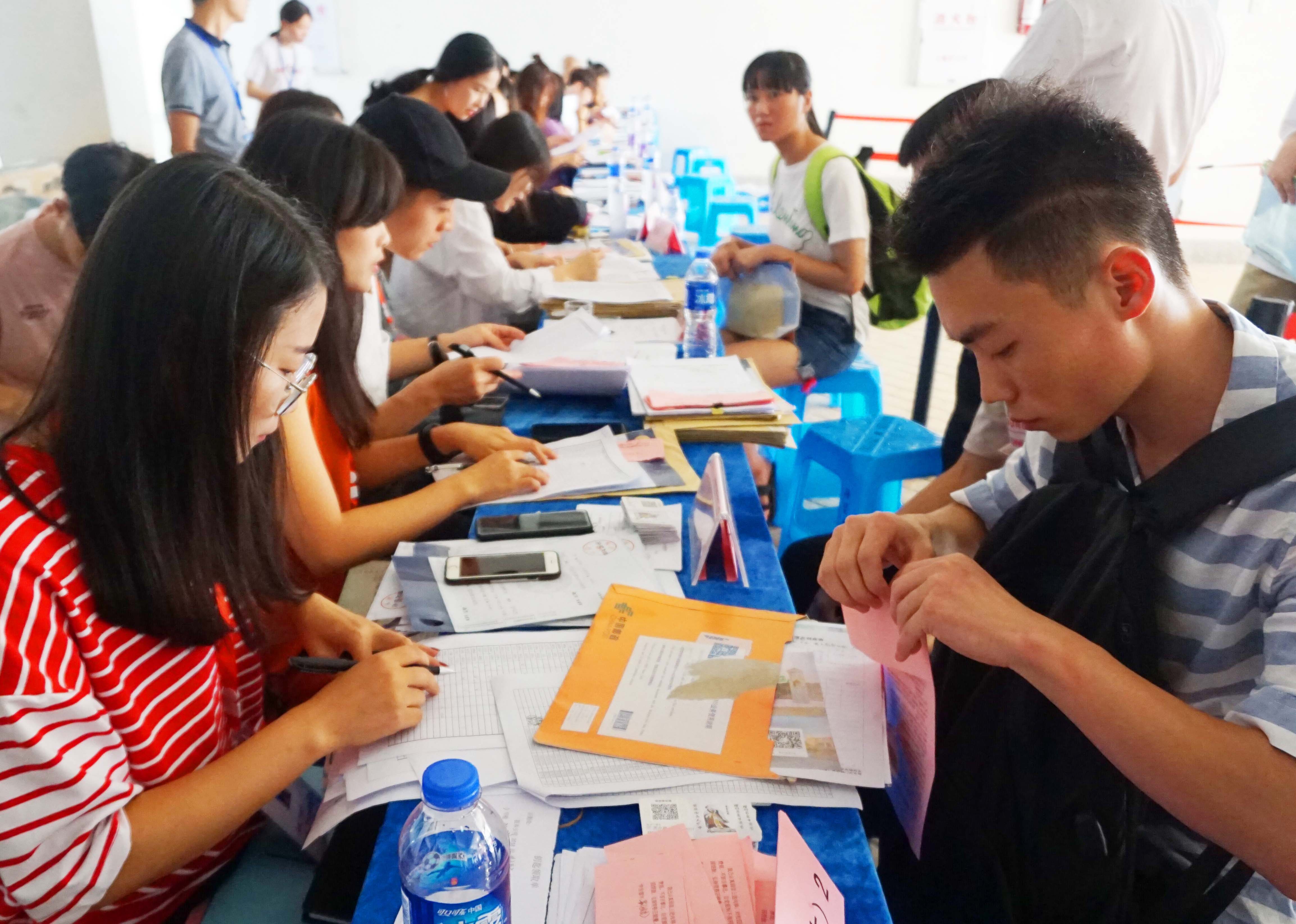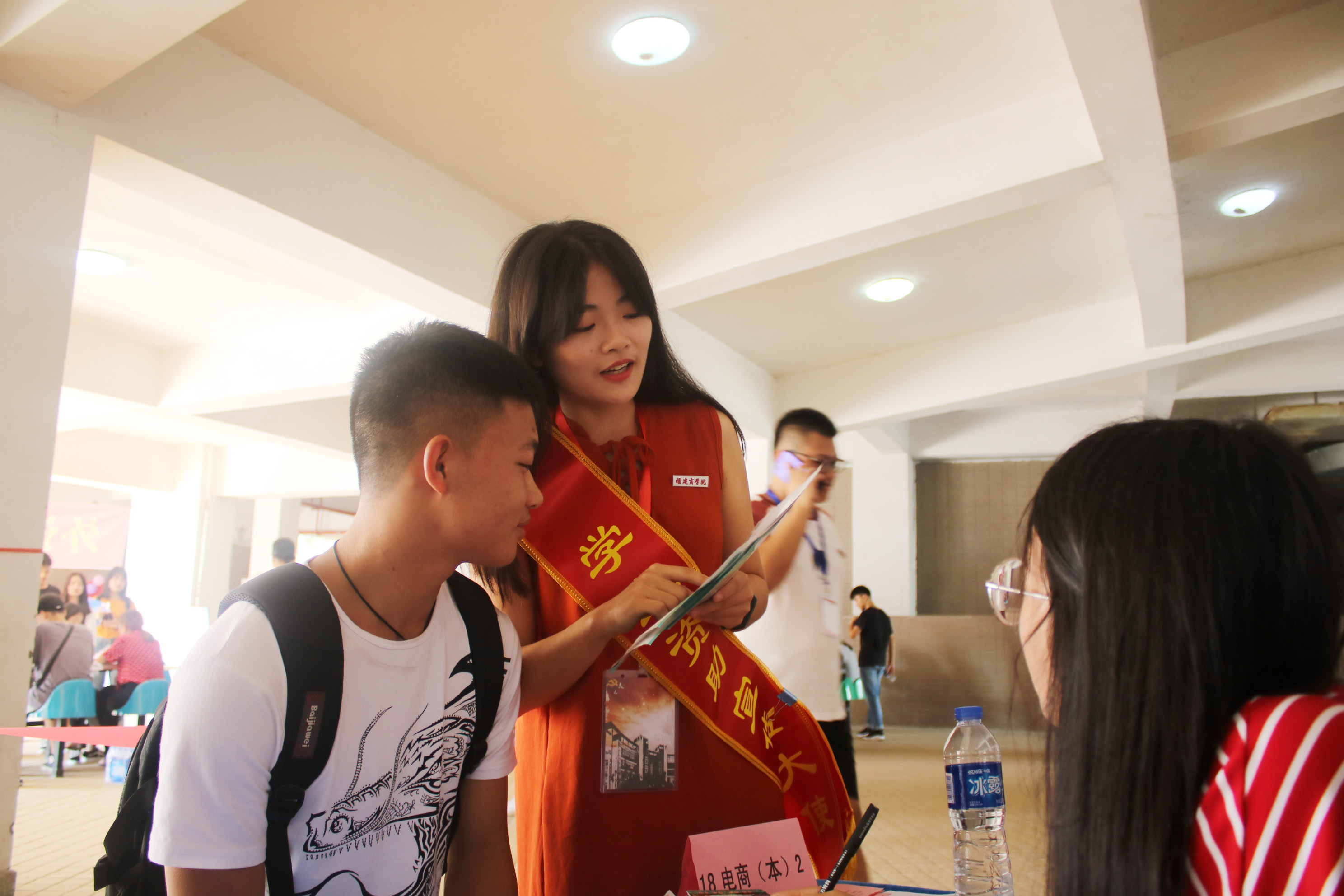 国际经济与贸易系新生报到现场,新生办理注册手续