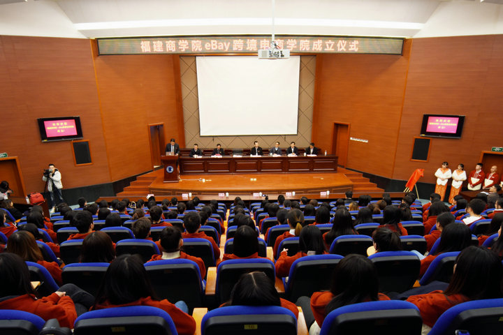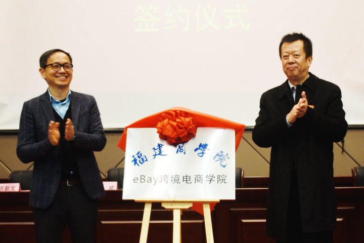2018年1月11日下午,作为推动福建跨境电商产业发展整体战略的一环,由eBay、福建自贸试验区福州片区和我校三方联合举办的eBay公司全球首家、福建省高校第一家校企合作电商产业学院——“bat365中文官方网站eBay跨境电商学院”在我校马尾校区正式揭牌成立。eBay全球副总裁、大中华区首席执行官林奕彰、福建自贸区福州片区管委会副主任梁勇以及我校党委书记刘剑津、校长黄斌出席揭牌仪式。副校长袁新文主持仪式。