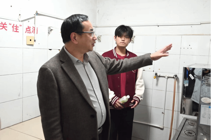 座谈结束后,蒲文庆前往6号楼学生宿舍,实地查看同学们的居住环境、消防设施配备情况等,与宿舍内学生亲切交谈,详细询问日常起居、学习状态及实际需求,让同学们深切感受到学校的关怀与温暖。