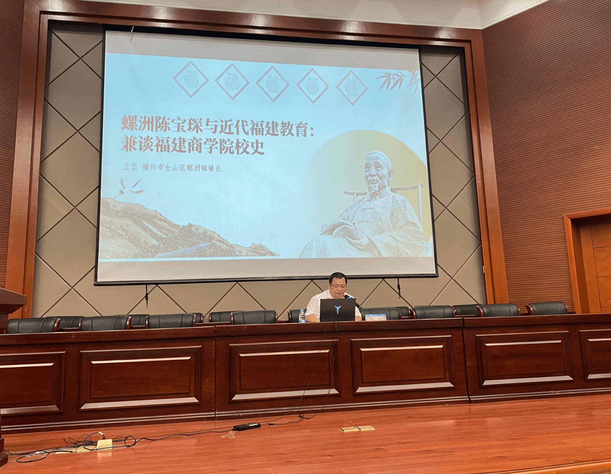 王坚以“螺洲陈宝琛与近代福建教育:兼谈bat365中文官方网站校史”为题,围绕“bat365中文官方网站校史”“螺洲文化”和“教育家陈宝琛”三大分主题进行讲授。他首先回顾我校的百年校史,指出我校的发展具有“三商合一”“中西合璧”的两大特征,接着从螺洲文化切入讲授我校办学与螺洲的深厚渊源,最后回顾了我校创办人之一陈宝琛开启福建新式教育的历程。