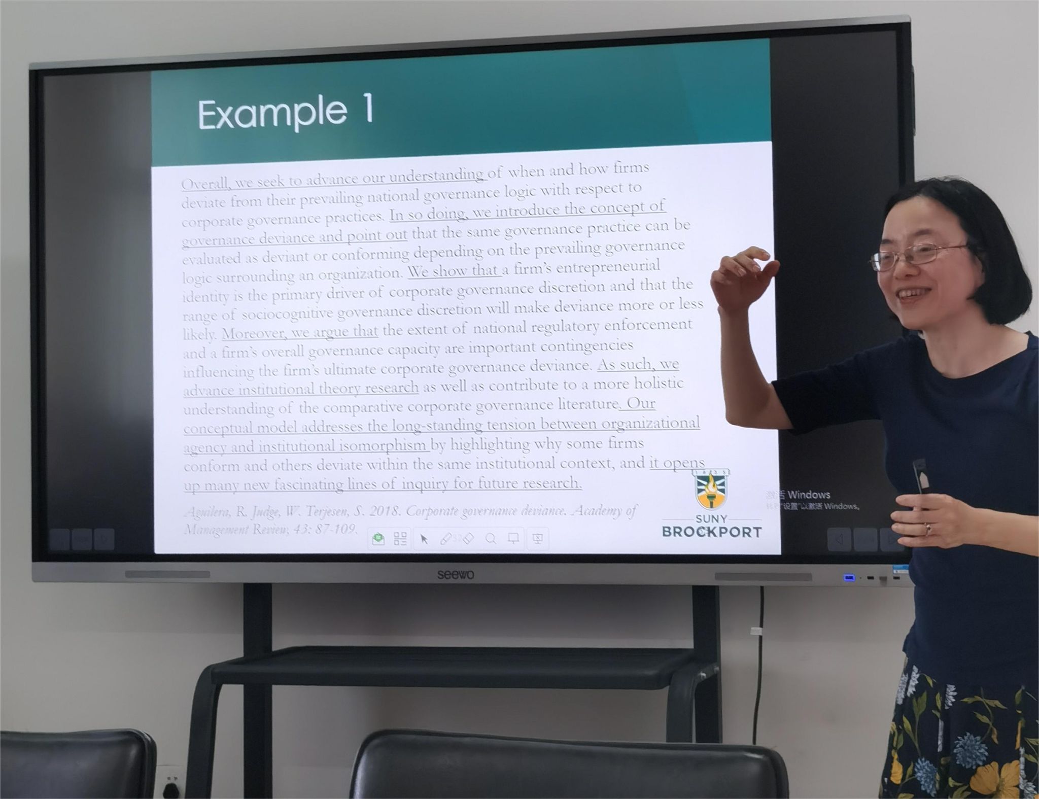 何乐融教授从理论、情境和现象三个维度探讨研究设计的构建,以她自己发表的在顶级期刊上的论文和一些经典的发表在顶级期刊上的论文做案例,阐述了引言、制度背景、文献回顾和假说、数据方法和模型、回归结果,以及讨论和结语等实证研究六大模块的写作方法,并就期刊选择与投稿、审稿修改和学术合作等话题分享了个人经验,并与在座教师进行了积极的问答互动。在座教师纷纷表示这是一场学术盛宴,希望以后举办更多此类高水平讲座。此外,还对学院学科建设、专业建设等方面做了指导与交流。