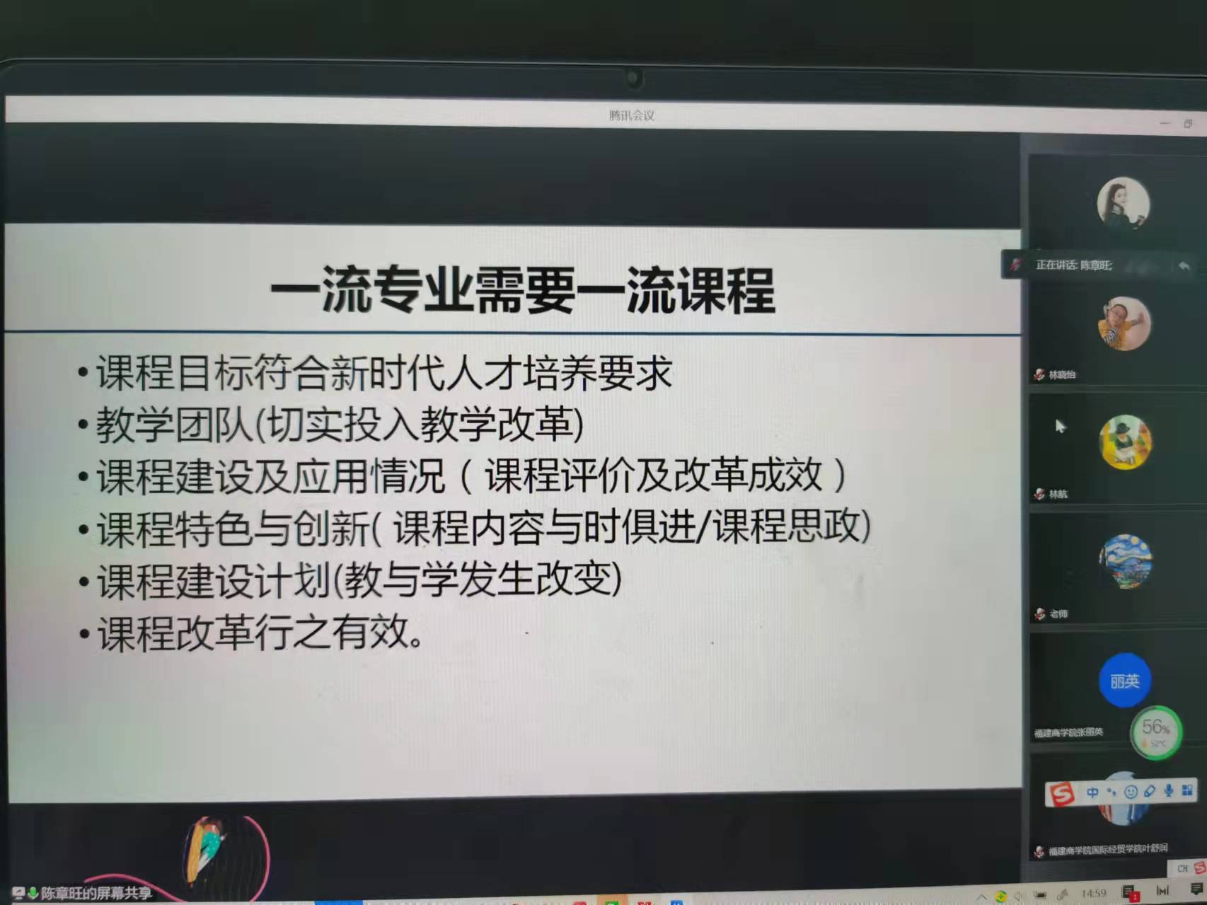 陈章旺教授针对bat365官网国际商务专业申报省级一流本科专业情况提出了宝贵建议,并就老师们提出的学科发展、专业建设中的相关问题进行了互动交流。